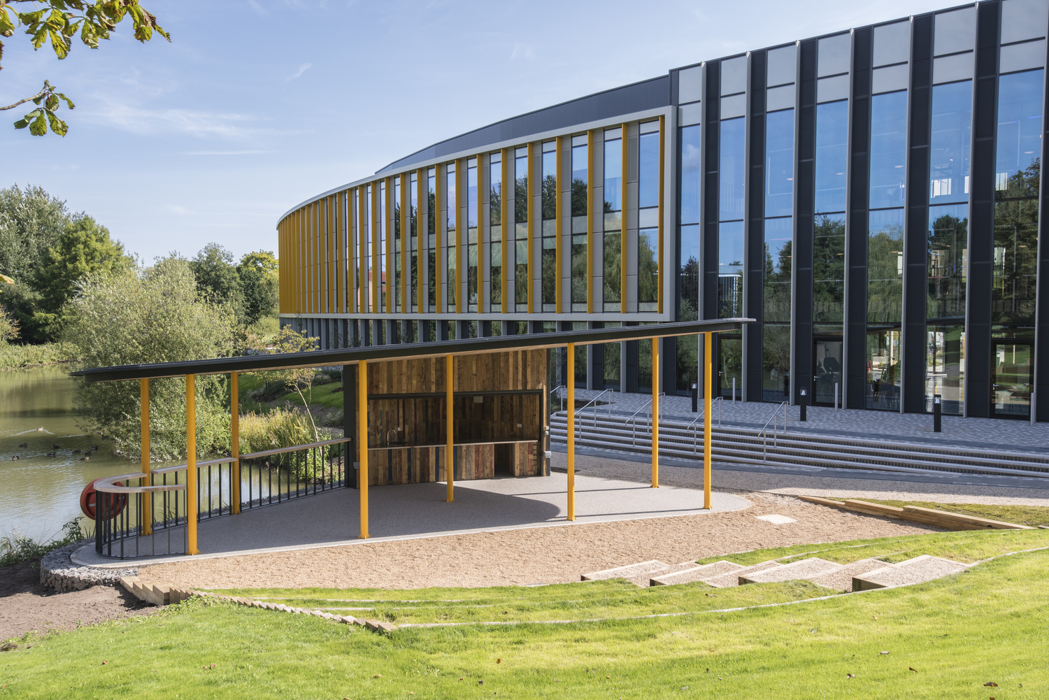 Bradfield Centre was designed with its surrounding environment in mind, curved to match the geometry of an adjacent lake.